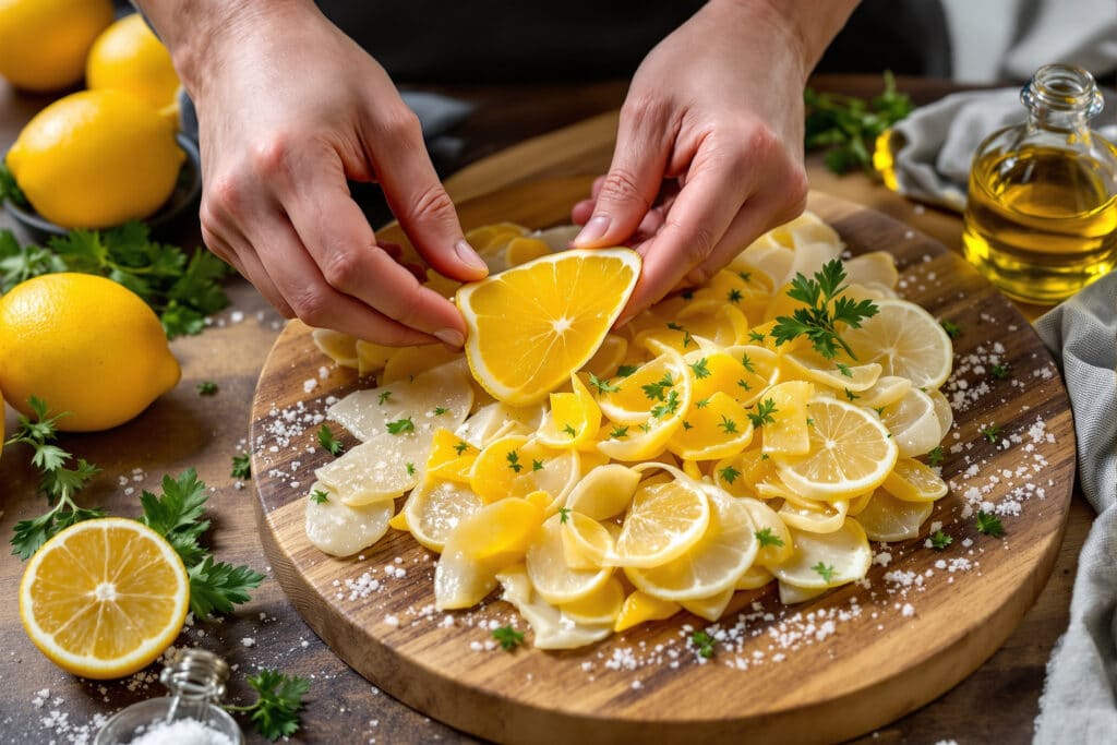 - Trancher finement : Utilisez un couteau bien aiguisé ou une mandoline pour obtenir des copeaux presque translucides. Posez-les alors délicatement sur un carpaccio de légumes, un filet d’huile d’olive fruitée, un tour de moulin à poivre.