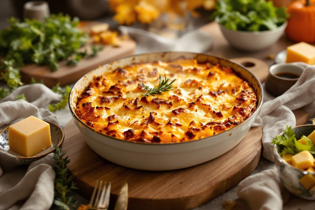 Pour que la surface forme cette croûte dorée à souhait, je conseille de saupoudrer un léger voile de chapelure fine avant d’enfourner le plat à 180°C. Cela empêche le fromage de brûler tout en le rendant légèrement croustillant. Le gratin doit cuire environ 25 minutes, jusqu’à ce que le potimarron s’imbibe de la crème et que le dessus devienne bien doré.